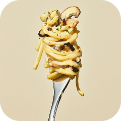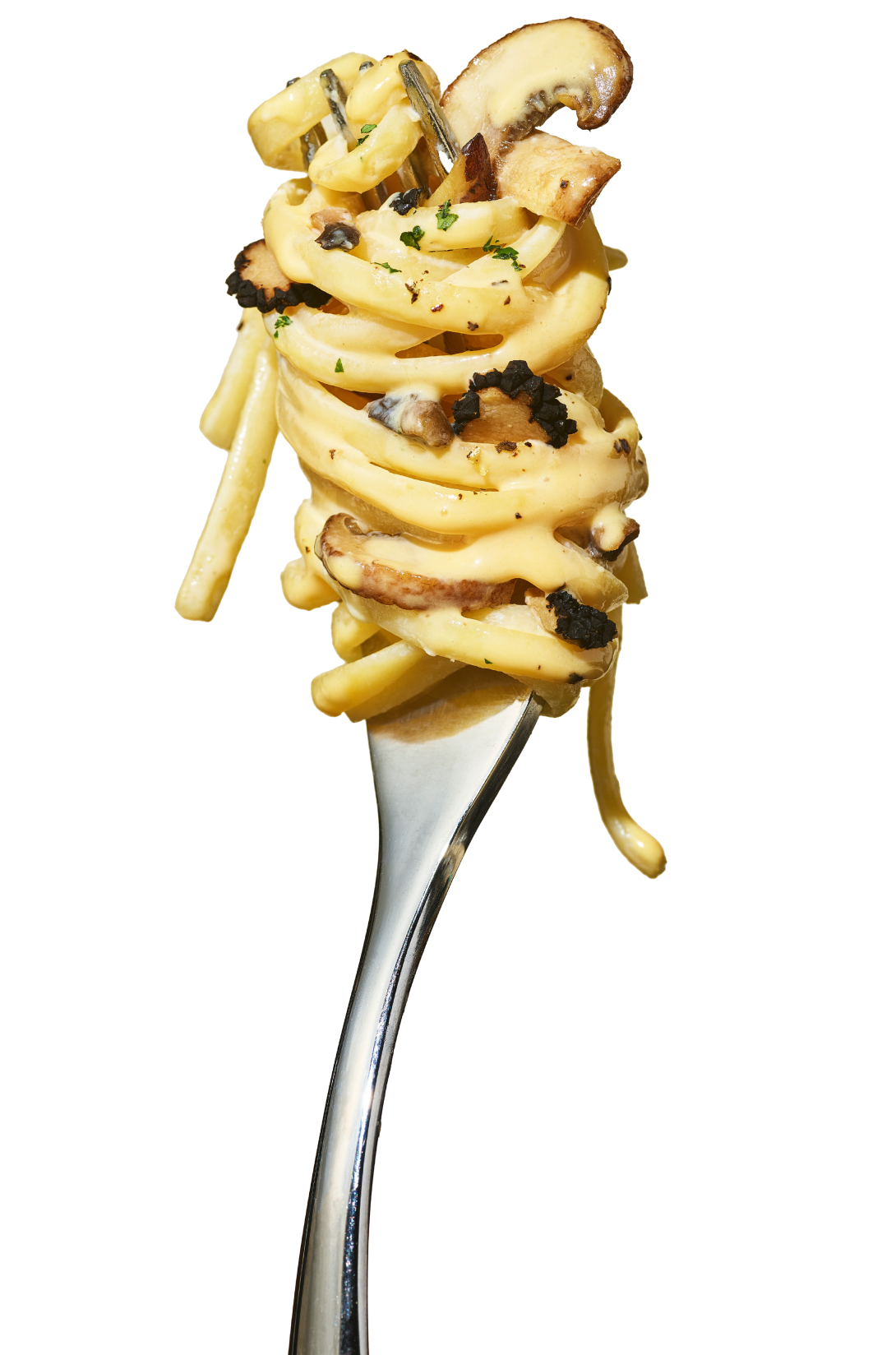 マッシュルームと椎茸を使った濃厚でクリーミーなソースに、トリュフの芳醇な香りをまとわせました。